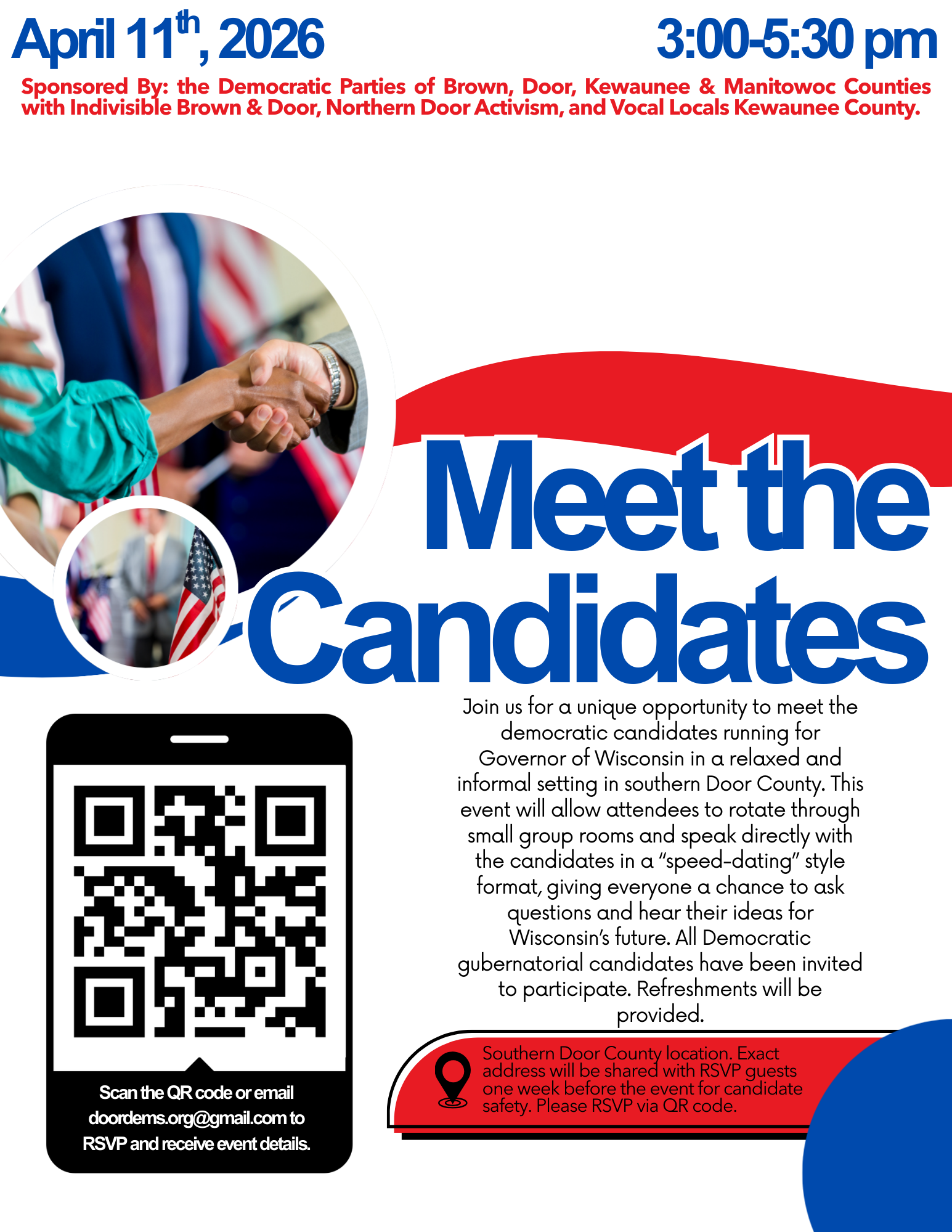 Together with Indivisible, Vocal Locals Kewaunee County, and the Democratic Parties of Brown, Door, Kewaunee and Manitowoc - we have come together to host an exciting event featuring ALL of the gubernatorial candidates.